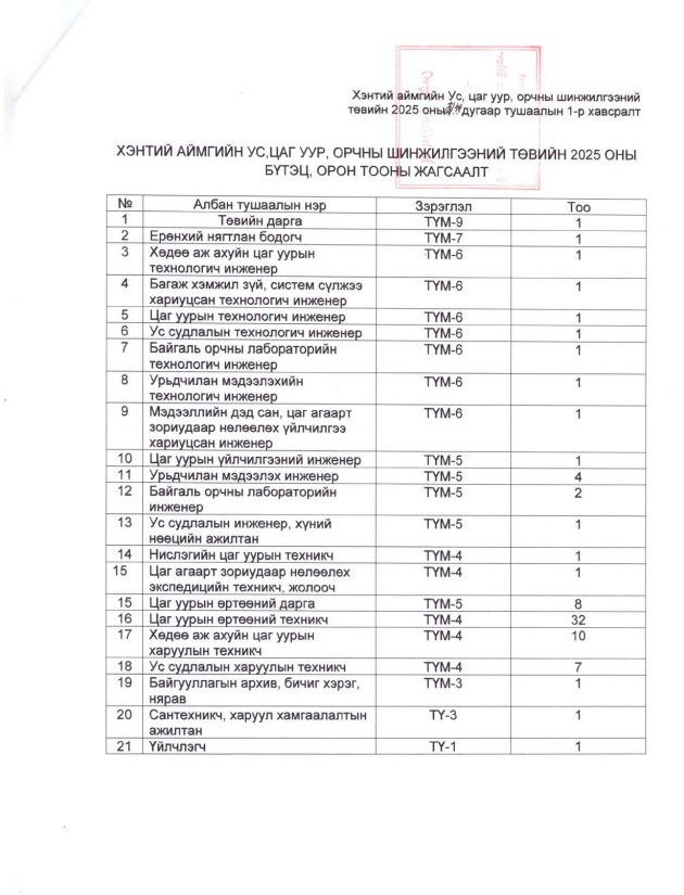 УЦУОШТ-ийн даргын бүтэц, албан тушаалын жагсаалт баталсан тушаал 2025-08-13, Б/44