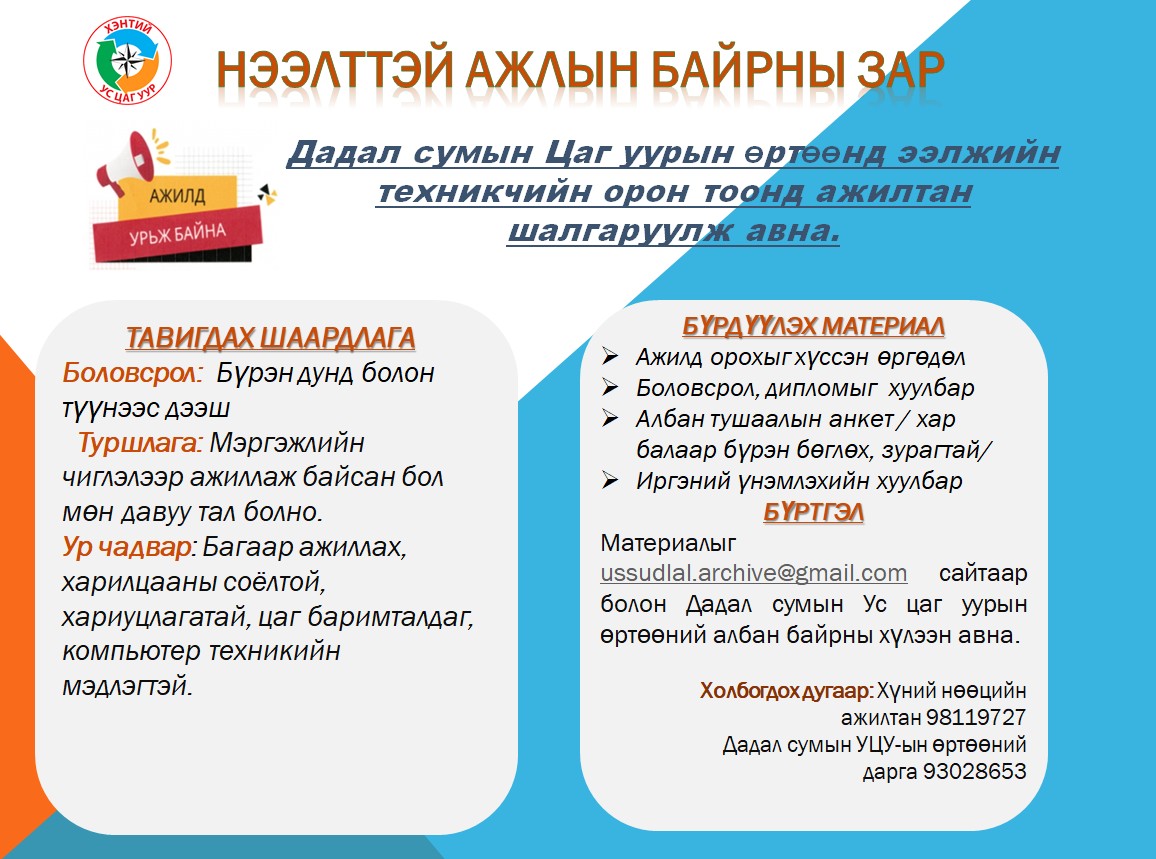 Ус цаг уурын Дадал өртөөнд ээлжийн техникчийн орон тоонд ажилтан авна